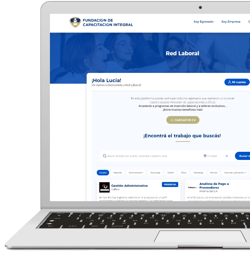 Somos la Red Laboral de la Fundación de Capacitación Integral, en esta plataforma te vinculamos con las empresas que confían en nuestra visión educativa.